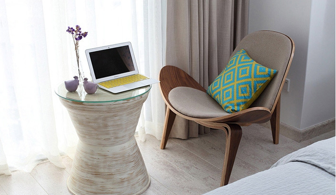 雅致的白色是整個內室的主色調,清淡卻不顯乏味的顏色搭配不僅將設計書對于顏色的種種思考和感悟完全的表現了出來,起著點綴作用的各色典籍也是為內室增色不少,雅致的顏色,均衡的色塊,自由的風格,個性的生活,如此組合是一種精神上呈現的放松和自然,在那和諧的顏色之間,裝飾用的棕色和淺黃,不僅為內室增添了一抹清新氣息,更是為整個增加了一種自由時尚感覺。