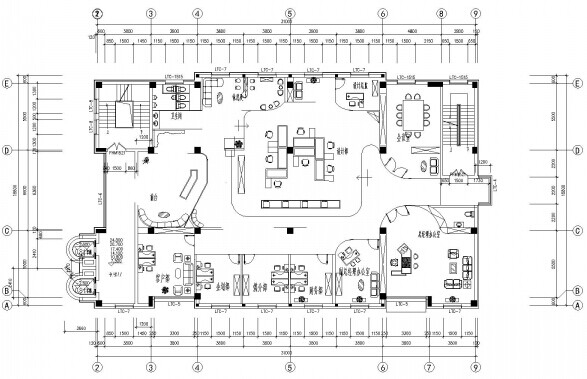 ▄原建筑結(jié)構(gòu)分析: 甲方的辦公空間需要的功能區(qū)域包括前臺(tái)接待區(qū)、公共辦公區(qū)、會(huì)議室、總經(jīng)理辦公室、走廊、茶水間、綜合辦公室、財(cái)務(wù)室、洽談室等。我們的設(shè)計(jì)師據(jù)此完成了平面布置圖和一系列的施工圖。