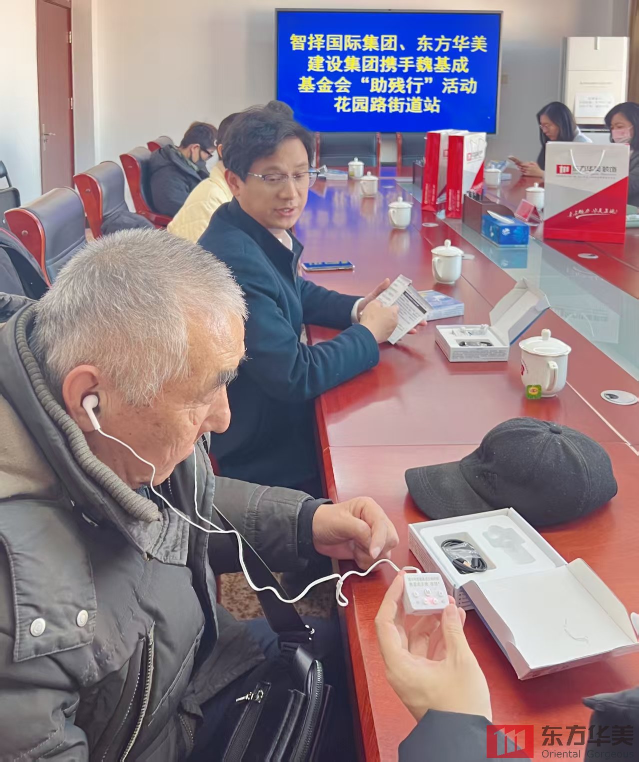 光善紅先生代表智擇國際集團、東方華美建設集團攜手魏基成基金會,帶著滿滿的愛心,向花園路街道辦事處捐贈了82臺助聽器,只為幫助街道的殘疾人及聽力障礙老年人能更好地聆聽世界的美妙。