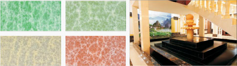 [華美藝術(shù)隔斷] : 通過將建筑、尾礦等余料回收,通過自主發(fā)明的全新第五代水性環(huán)氧互穿技術(shù)制造而成的無污染、可私人定制的仿石產(chǎn)品。產(chǎn)品實(shí)現(xiàn)了綠色循環(huán)、資源再生,可代替陶瓷、天然大理石、玻璃、木材等相關(guān)建筑裝飾、裝修材料。
